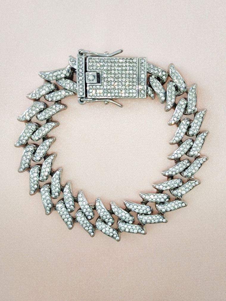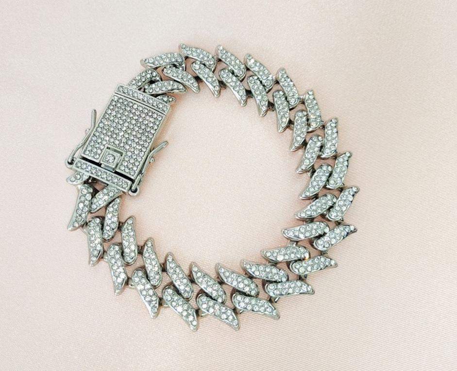 Pełen blasku łańcuszek w kolorze srebrnym z mnóstwem białych cyrkonii i ozdobnym zapięciem wspaniale będzie prezentował się na szyi kota lub małego psa. Oczka przypominają łezki, które subtelnie rozchodzą się na boki. Tak bogato zdobiony łańcuszek przepięknie odbija światło i doda zniewalającego blasku Twojemu pupilowi. Kolory dominujące: