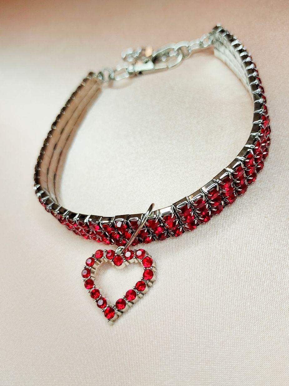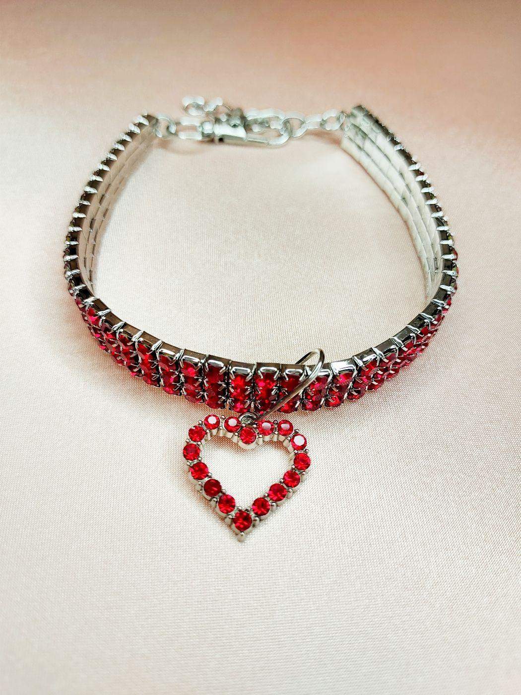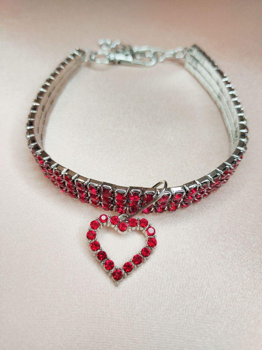 Regulowana obroża cyrkoniowa w kolorze czerwonym z urokliwą zawieszką w kształcie serduszka będzie wspaniałym prezentem dla Twojego czworonożnego przyjaciela.