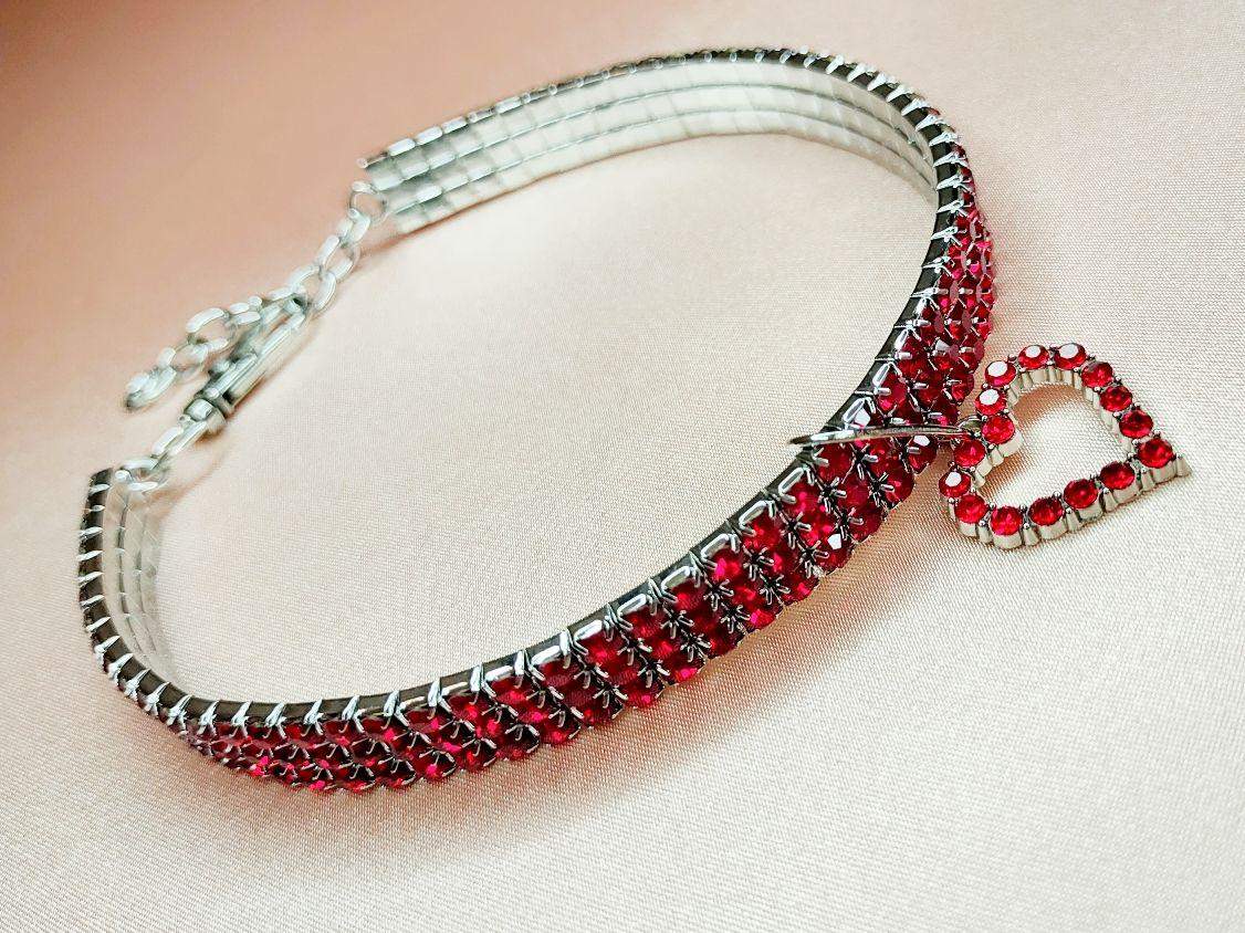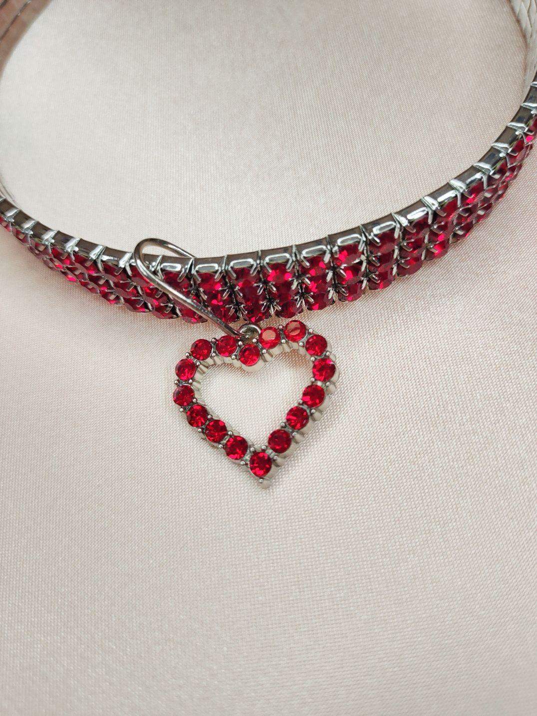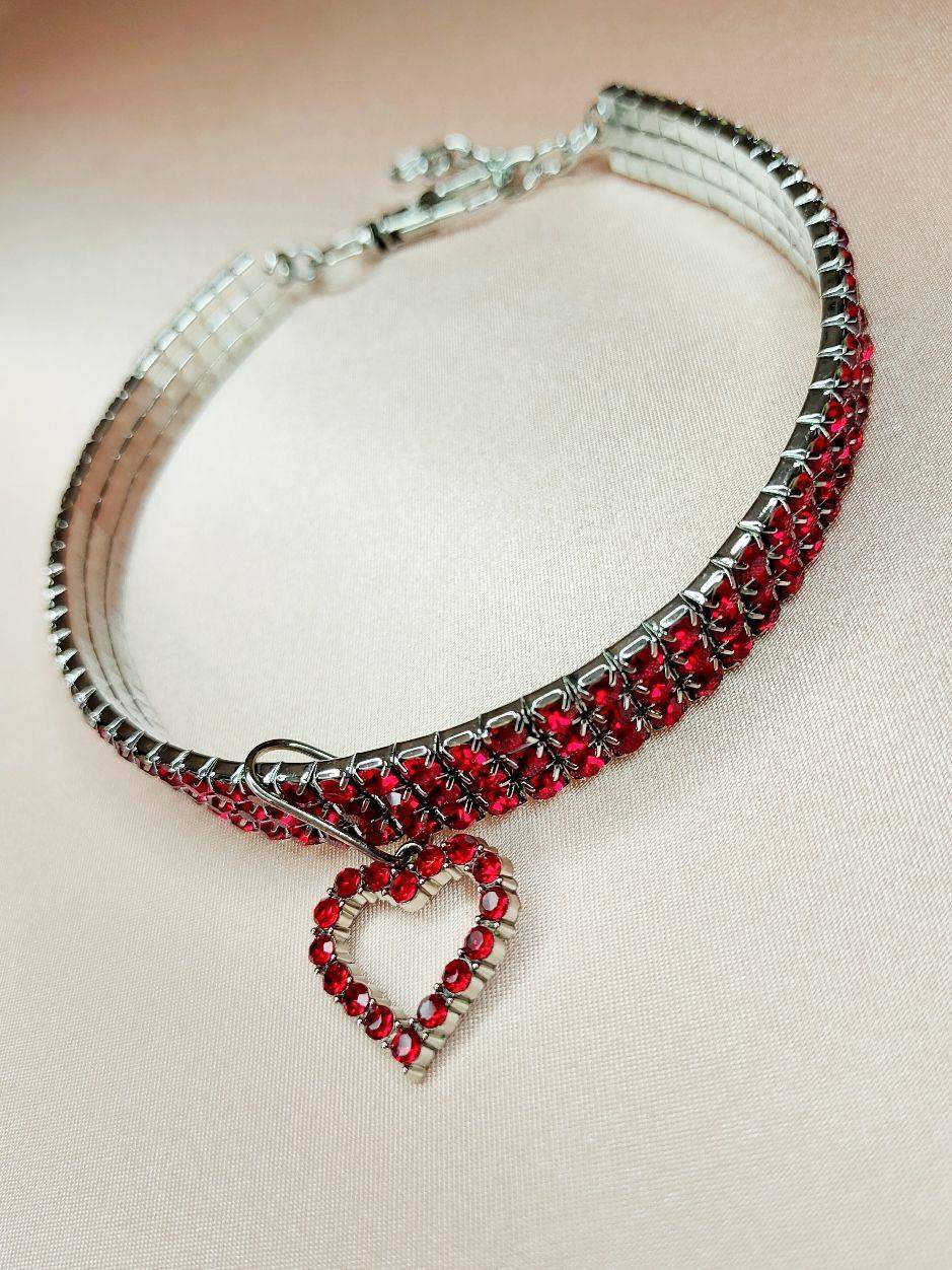 Regulowana obroża cyrkoniowa w kolorze czerwonym z urokliwą zawieszką w kształcie serduszka będzie wspaniałym prezentem dla Twojego czworonożnego przyjaciela.