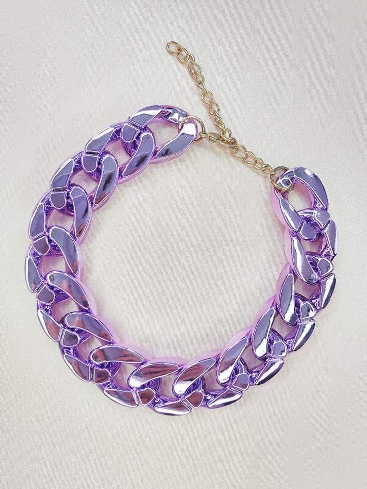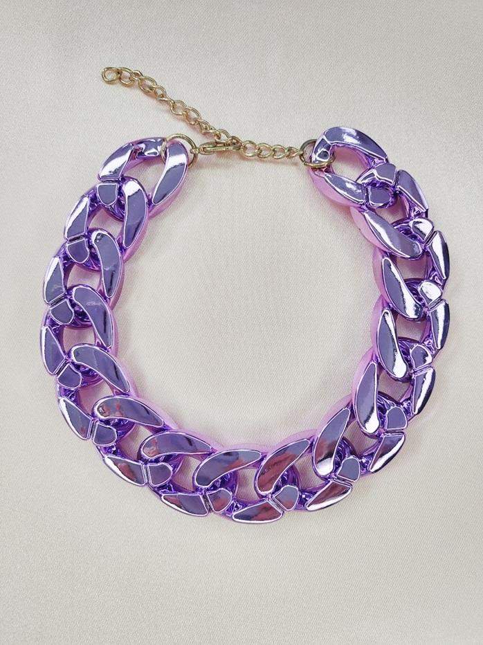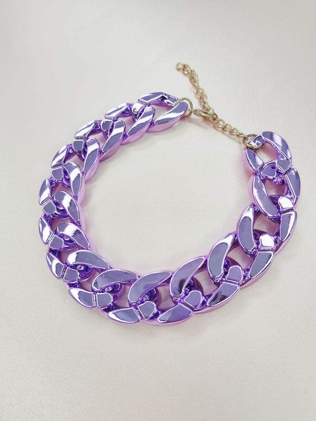 Fioletowa błyszcząca obroża dla psa (mniejsza) Jedyny w swoim rodzaju, mocno błyszczący łańcuszek w kolorze fioletowym dla kota lub średniej wielkości psa. Nie musisz martwić się o ciężar takiego łańcuszka, ponieważ jest wykonany z lekkiego akrylu. Dbamy nie tylko o zjawiskowy wygląd naszych obroży, ale także o zdrowie szyi naszych futrzastych klientów. Kolory dominujące: - fioletowy - złoty Wymiary naszyjnika: - minimalna długość 27,2 cm - maksymalna długość 34,1 cm - szerokość 20 mm Materiał: - łańcuszek akrylowy - zapięcie metalowe