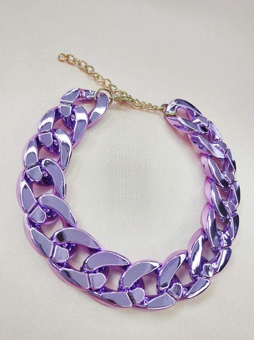 Jedyny w swoim rodzaju, mocno błyszczący łańcuszek w kolorze fioletowym dla kota lub średniej wielkości psa.