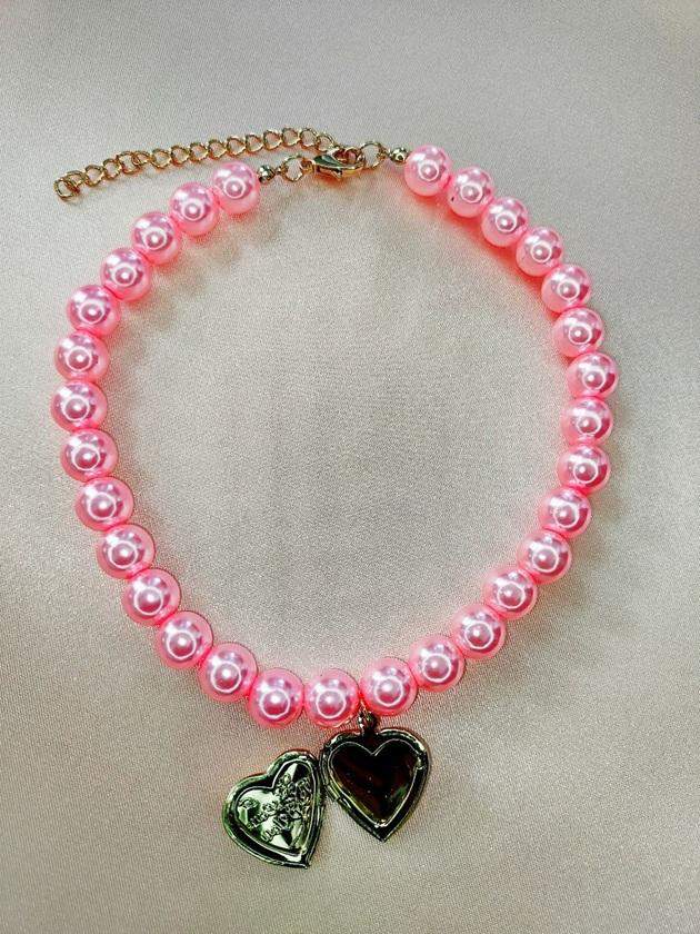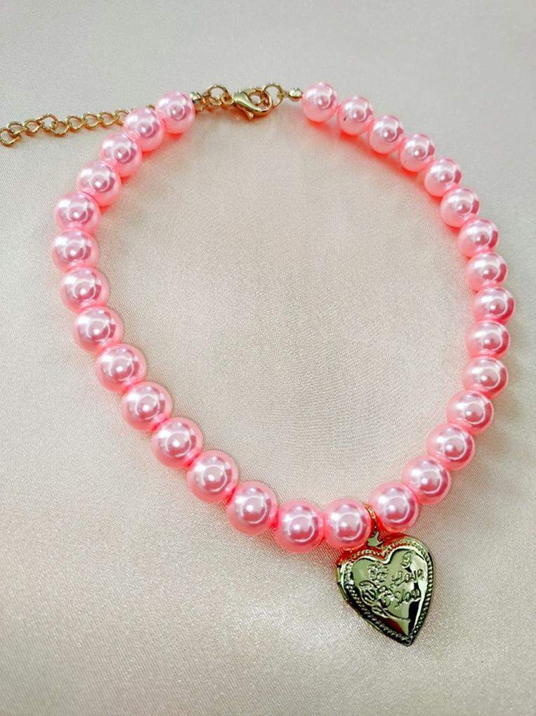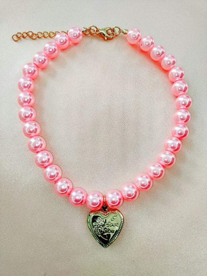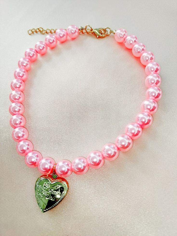 Słodka i romantyczna obroża stworzona, aby uczcić Waszą piękną relację. Naszyjnik z pereł w kolorze cukierkowego różu oraz biżuteryjne.