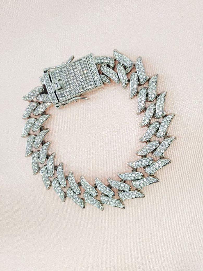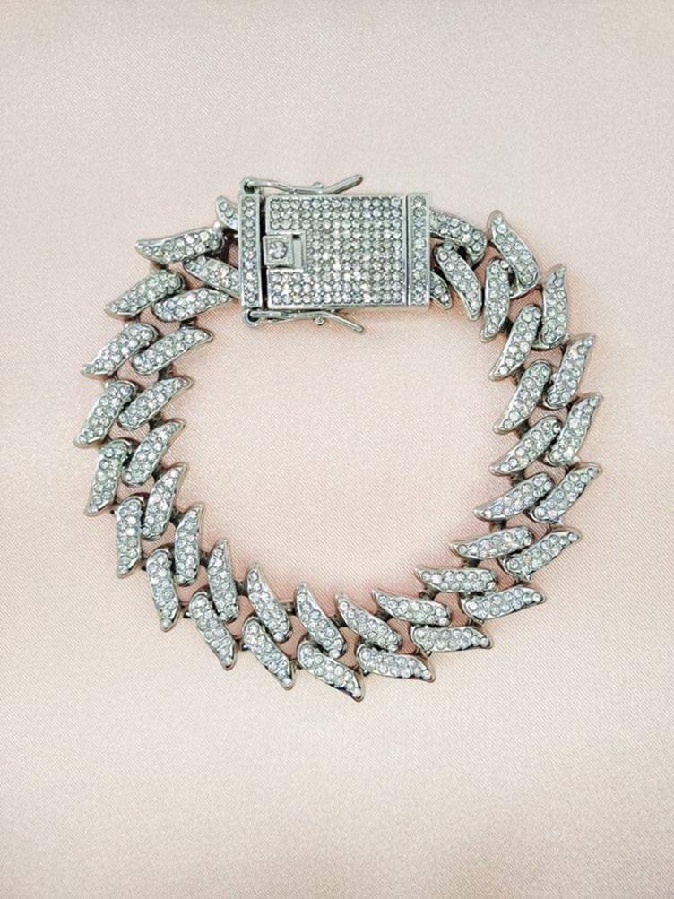Pełen blasku łańcuszek w kolorze srebrnym z mnóstwem białych cyrkonii i ozdobnym zapięciem wspaniale będzie prezentował się na szyi kota lub małego psa. Oczka przypominają łezki, które subtelnie rozchodzą się na boki. Tak bogato zdobiony łańcuszek przepięknie odbija światło i doda zniewalającego blasku Twojemu pupilowi. Kolory dominujące: