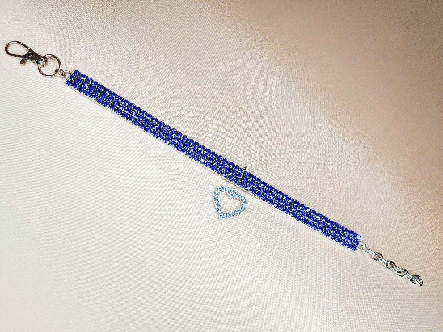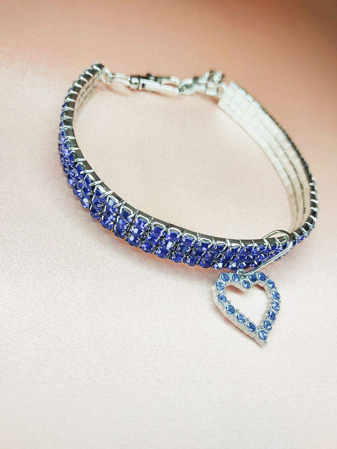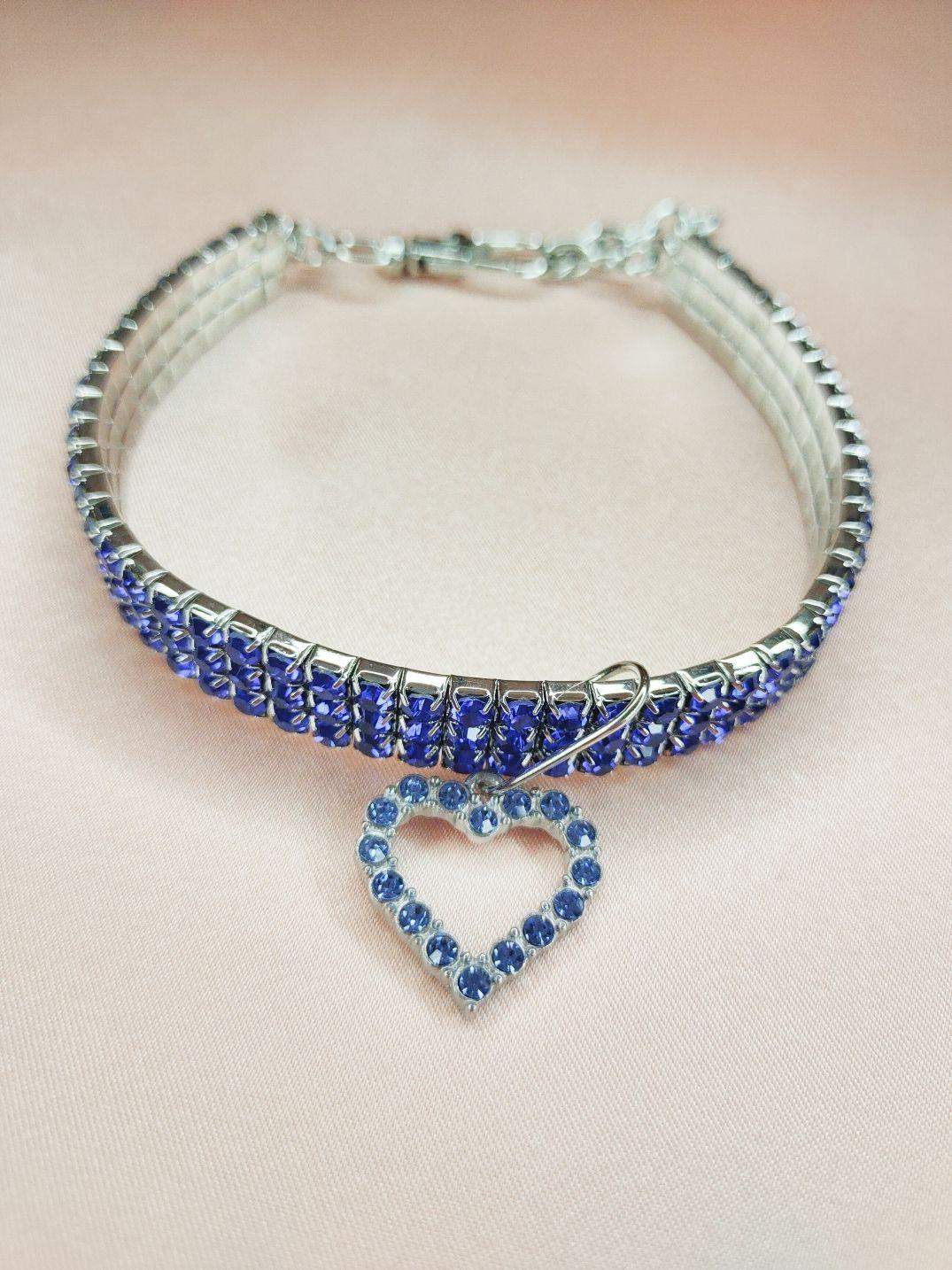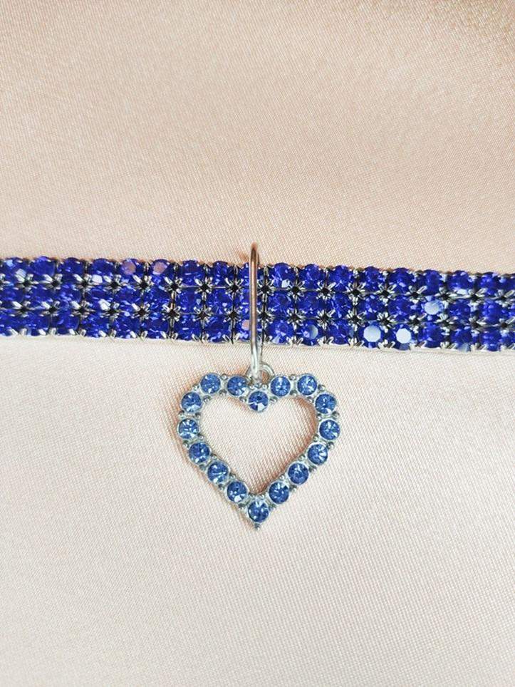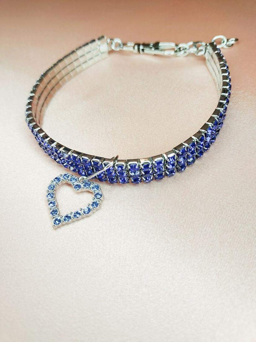 Regulowana obroża cyrkoniowa w odcieniu srebrno-niebieskim i zawieszką w kształcie serduszka będzie urokliwym dodatkiem na szyi Twojego pupila.