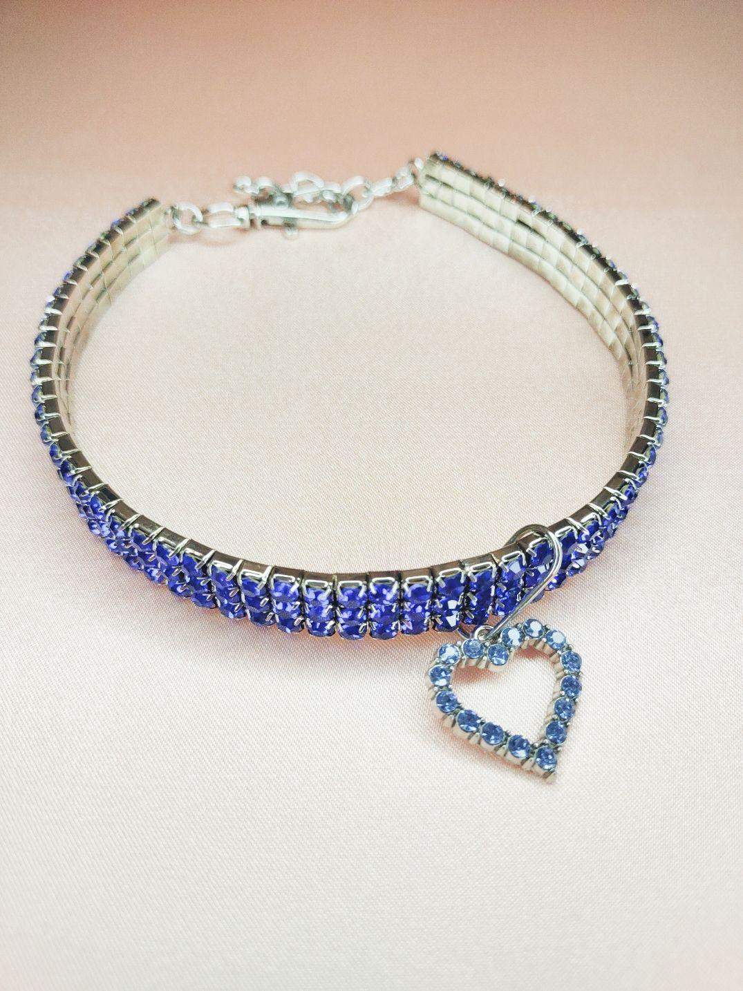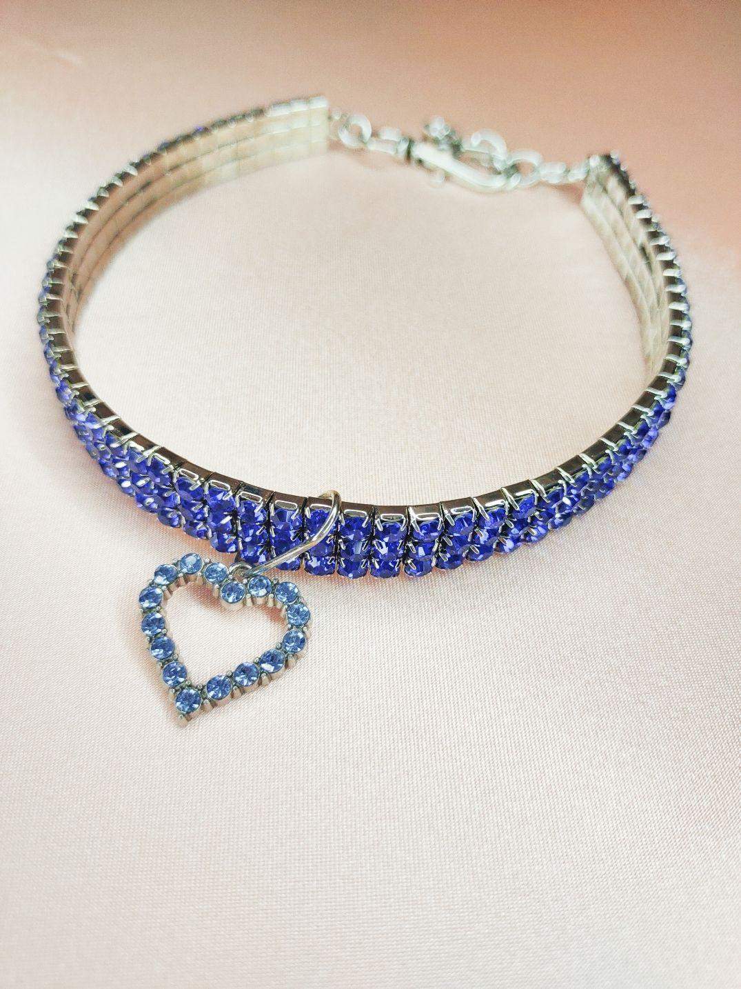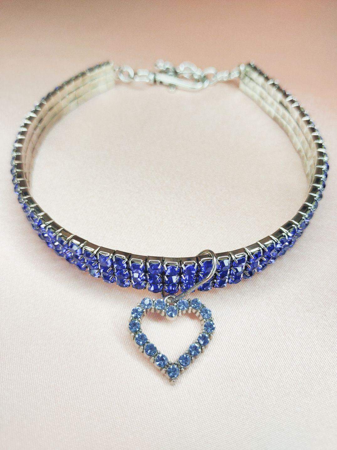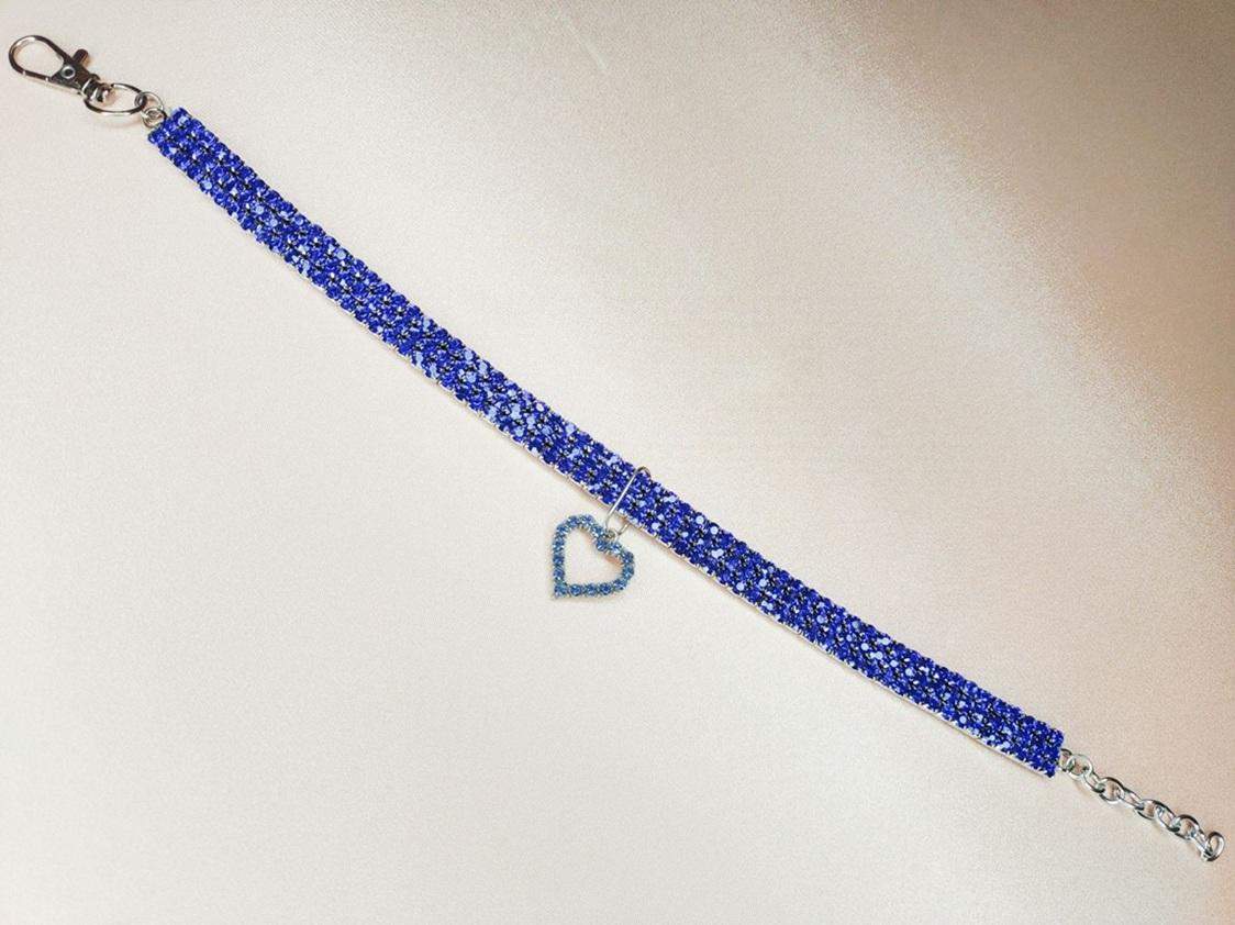 Regulowana obroża cyrkoniowa w odcieniu srebrno-niebieskim i zawieszką w kształcie serca będzie urokliwym dodatkiem na szyi Twojego pupila.