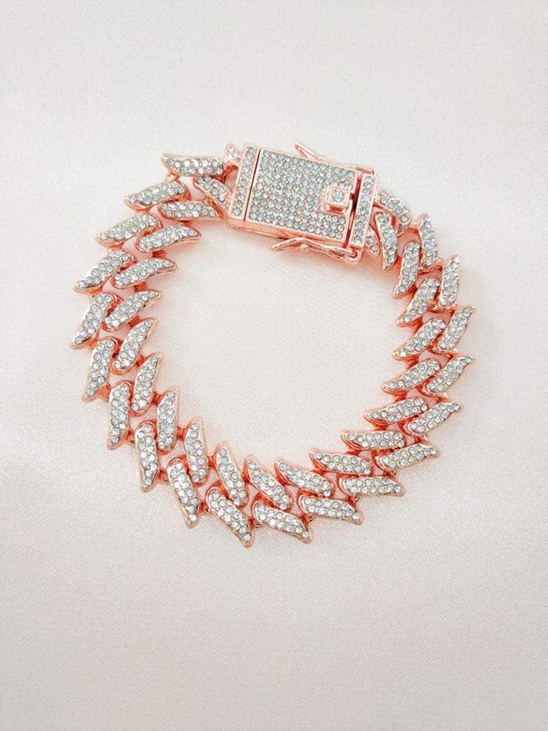 Pełen blasku łańcuszek w kolorze różowego złota z mnóstwem białych cyrkonii i ozdobnym zapięciem wspaniale będzie prezentował się na szyi Twojego pupila. Oczka przypominają łezki, które subtelnie rozchodzą się na boki. Tak bogato zdobiony łańcuszek przepięknie odbija światło i doda zniewalającego blasku Twojemu pupilowi. Postaw na róż! Kolory dominujące: