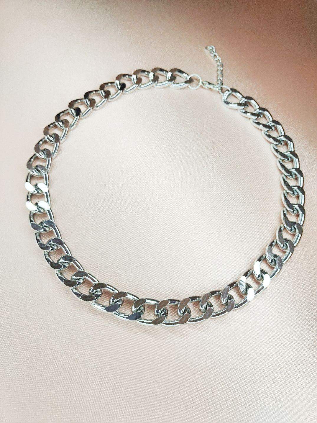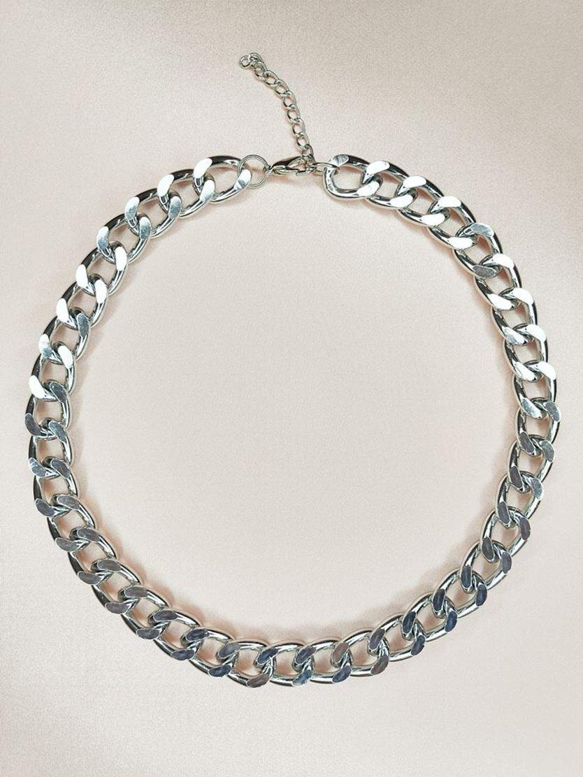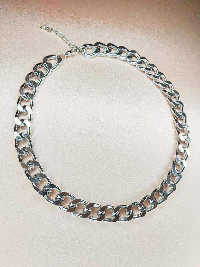 Błyszczący, lekki, metalowy łańcuszek w kolorze srebrnym dla dużego psiaka z regulowaną długością zapięcia.