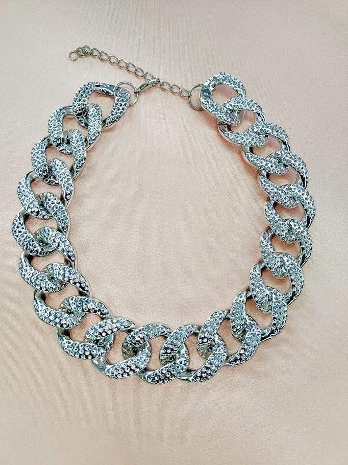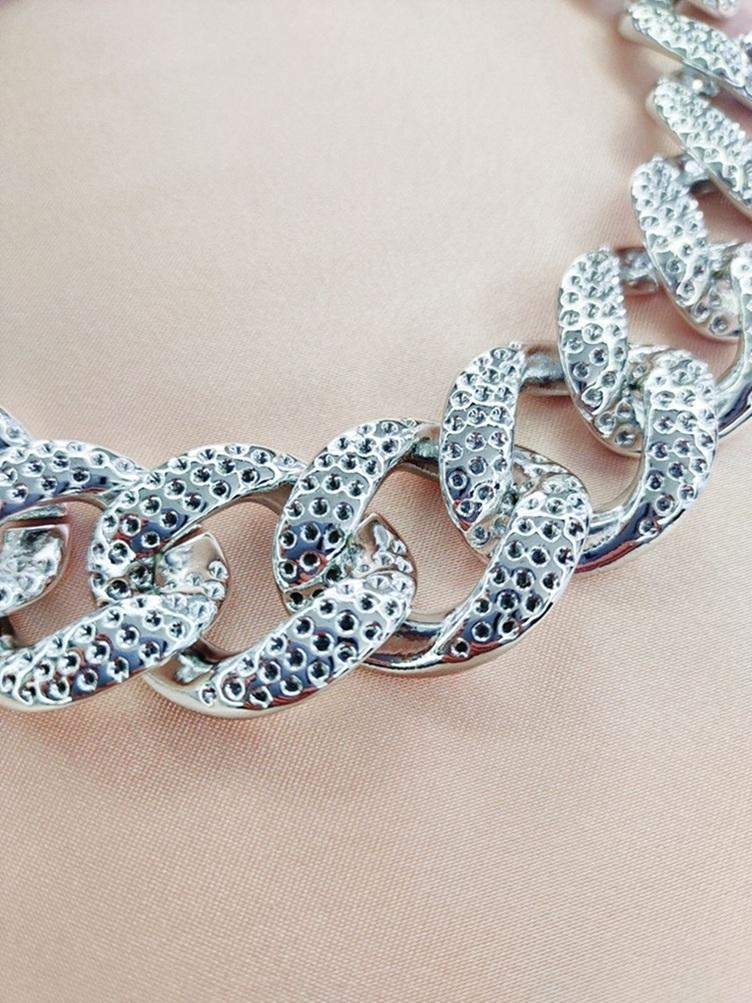 Szeroka srebrna obroża dla psa Zjawiskowy, szeroki łańcuszek w kolorze srebrnym dla Twojego pupila. Dbamy nie tylko o wizualny efekt, ale także o zdrowie szyi futrzaków. Dlatego ten produkt wykonany jest z lekkiego akrylu i stanowi doskonałą alternatywę dla ciężkich metalowych obroży. Czy już widzisz swojego psiaka w tym łańcuszku? Bo my zdecydowanie tak! Kolory dominujące: - srebrny Wymiary naszyjnika: - minimalna długość 28,8 cm - maksymalna długość 35,5 cm - szerokość 23 mm Materiał: - łańcuszek akrylowy - zapięcie metalowe