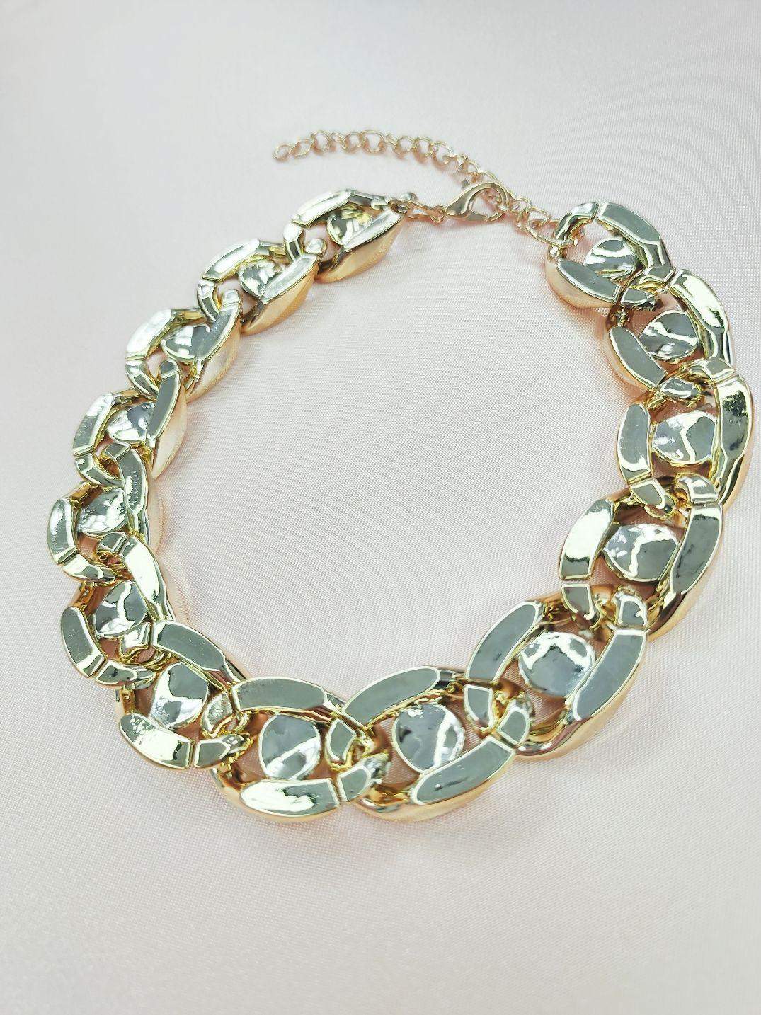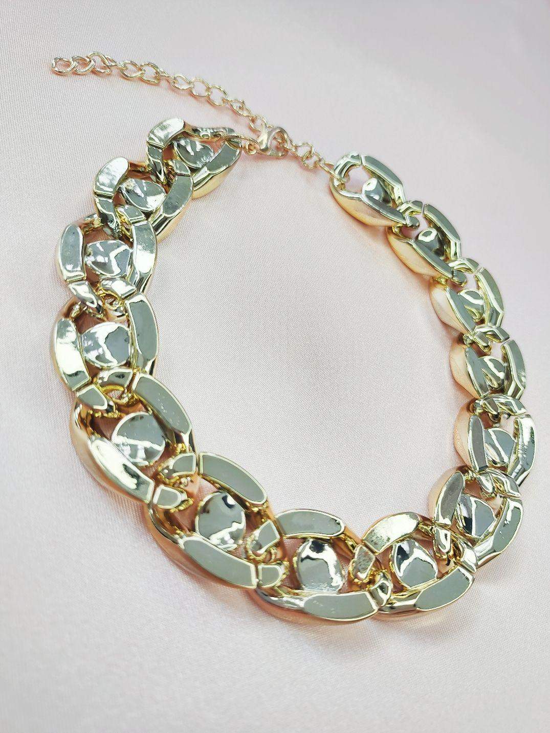 Błyszcząca obroża pełna w kolorze złotym Pełen blasku, szeroki łańcuszek w kolorze złotym z pełnym oczkiem to jest to czego szukasz dla swojego futrzanego przyjaciela. Naszyjnik zakończony jest zapięciem regulowanym w kolorze złotym. Nie martw się o wagę łańcuszka - wykonany jest z lekkiego akrylu, aby nie obciążał szyi Twojego pupila. Kolory dominujące: - złoty jasny Wymiary naszyjnika: - minimalna długość 27,8 cm - maksymalna długość 34,7 cm - szerokość 16 mm Materiał: - łańcuszek akrylowy - zapięcie metalowe