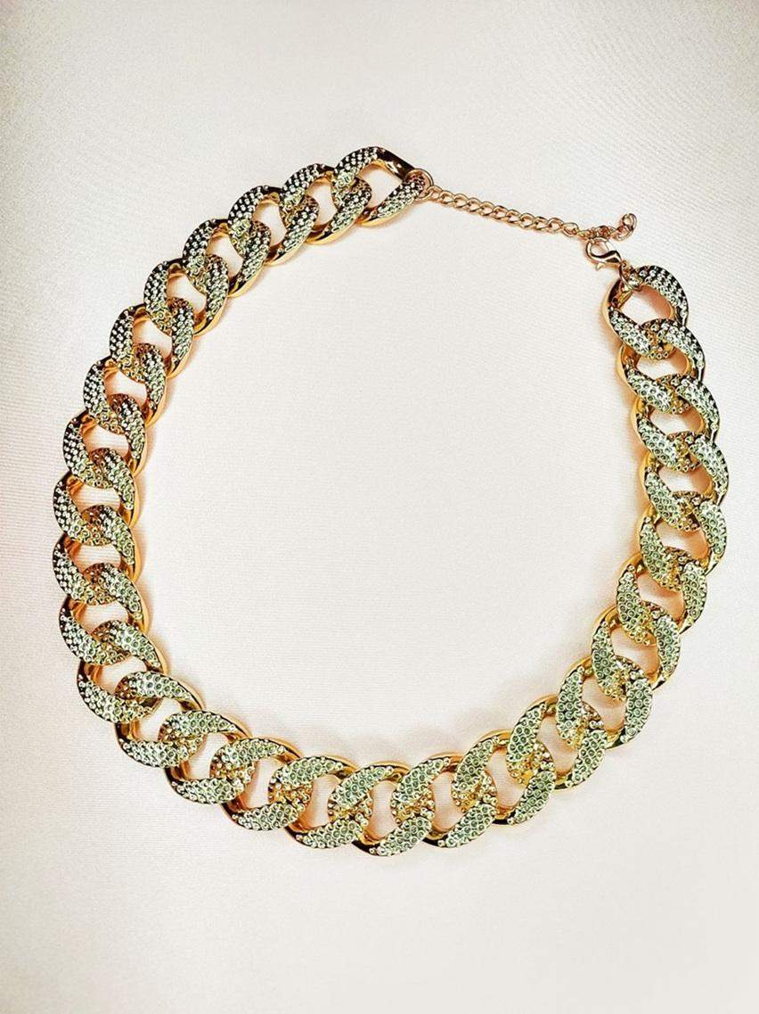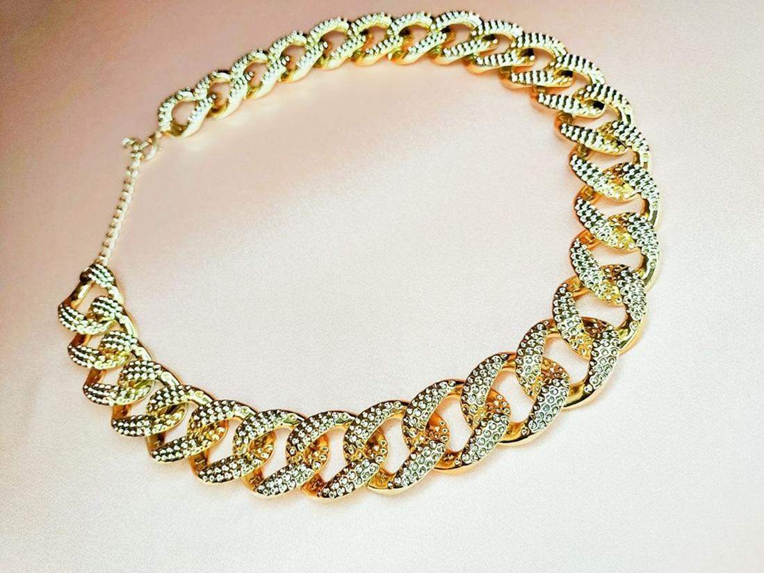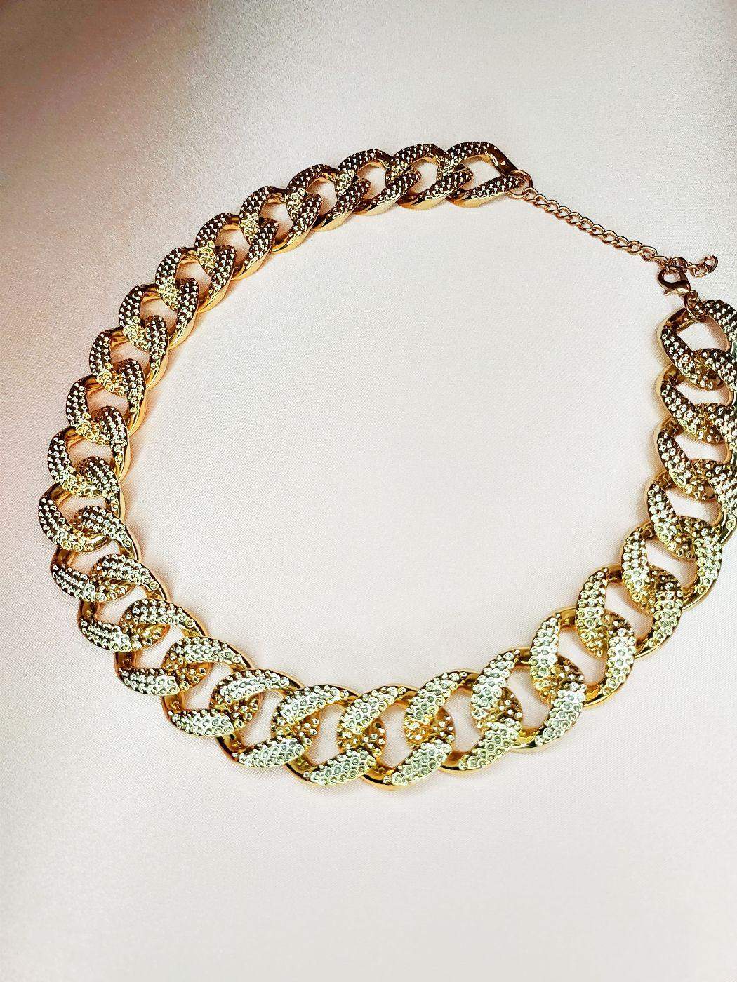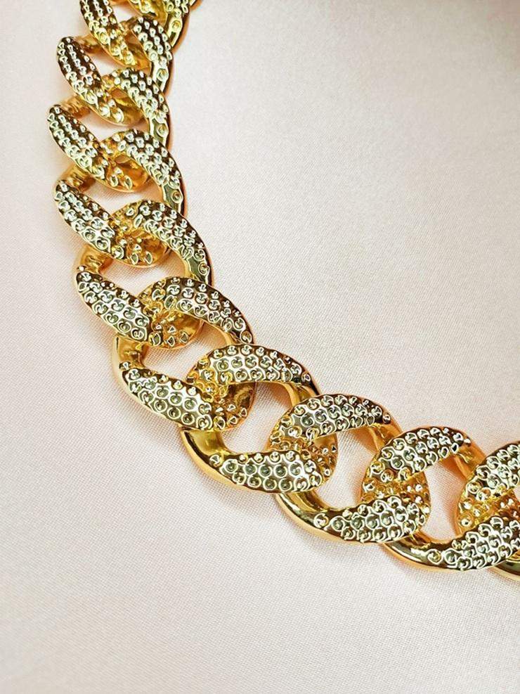 Szeroki złoty łańcuszek dla dużego psa Błyszczący, szeroki łańcuszek w kolorze jasnego złota dla dużych psów. Dbamy nie tylko o wizualny efekt, ale także o zdrowie szyi Waszych pupili. Dlatego ten produkt wykonany jest z lekkiego akrylu i stanowi doskonałą alternatywę dla ciężkich metalowych obroży. Czy już widzisz swojego psiaka w tym łańcuszku? Bo my zdecydowanie tak! Kolory dominujące: - złoty Wymiary naszyjnika: - minimalna długość 48,7 cm - maksymalna długość 55,7 cm - szerokość 23 mm Materiał: - łańcuszek akrylowy - zapięcie metalowe